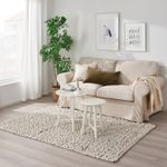 Уникальность каждому ковру придает пряжа разных нейтральных цветов, которую вплетают вручную, получая каждый раз новый дизайн.
