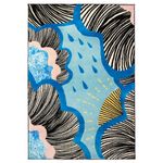 «Когда я начинала работу над дизайном текстиля ДОФТРЭНКА, в мыслях я уже видела яркие крупные рисунки, выполненные в разных техниках и как бы наложенные друг на друга. Я вспоминала легкие облака, похожие на сахарную вату, как в детстве, и сверкающую поверхность моря. И все это – на фоне синего неба. Так у меня постепенно оформился нужный орнамент, который я сначала вырезала из цветной бумаги и тканей. Надеюсь, текстильные товары этой серии будут напоминать вам о ленивом летнем отдыхе – или о ярких зимних днях».