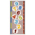 Дети могут измерить, как далеко им удалось прыгнуть в процессе игры; развивает моторику и навыки общения. Ковер можно использовать как забавный ростомер. Благодаря латексной подкладке ковер не скользит.