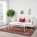 Этот ковер по размеру подходит к 2–3-местному дивану, но также подойдет для диванов других размеров в зависимости от того, как вы его положите.