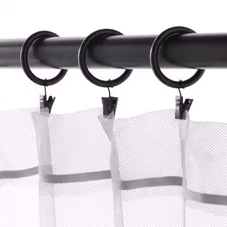 Эти черные кольца для гардин легко скользят по карнизу.