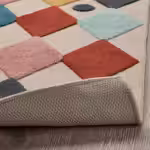 Красочный ковер с рельефным орнаментом «арлекин» — это мягкая поверхность, по которой приятно ходить и на которой удобно сидеть.