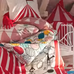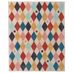 Красочный ковер с рельефным орнаментом «арлекин» — это мягкая поверхность, по которой приятно ходить и на которой удобно сидеть. Ворс на 90 % состоит из переработанного пластика. В этой серии представлен и другой текстиль в том
