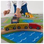- - На этом ковре есть все для организации дорожного движения: автомобильные дороги, парковки, дорожные знаки и железнодорожный переезд. Совсем как в настоящем городе. Можно дополнить игрушками серии ЛИЛЛАБУ.