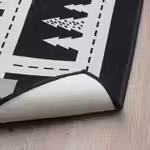 Графический чёрно-белый рисунок ковра легко сочетать со всеми остальными вещами в любой комнате.