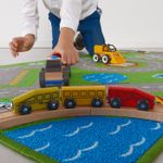 На этом ковре есть все для организации дорожного движения: автомобильные дороги, парковки, дорожные знаки и железнодорожный переезд. Совсем как в настоящем городе. Можно дополнить игрушками серии ЛИЛЛАБУ.