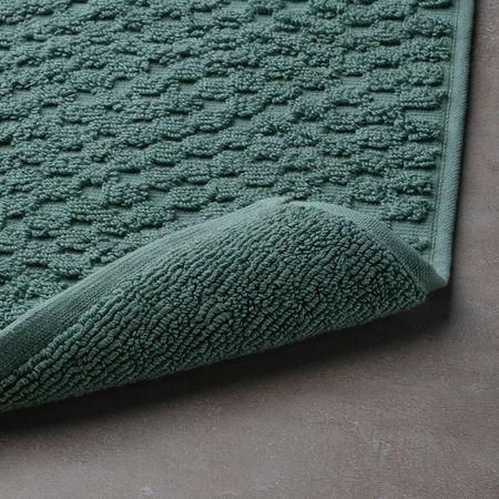По этому мягкому и толстому коврику для ванной из переработанного полиэстера очень приятно ходить, при этом латексная подкладка фиксирует его на месте.