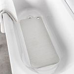 Не скользит в ванне или душевой кабине благодаря присоскам.После каждого использования рекомендуется провесить коврик для просушки. Для этого в коврике есть отверстие.