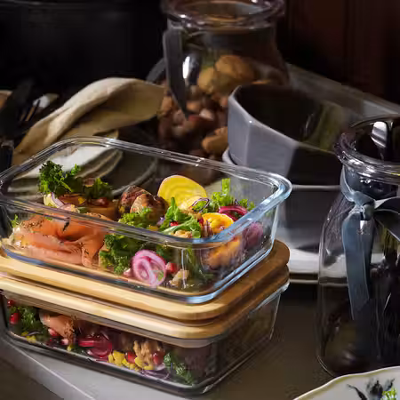 Съешьте сразу или сохраните на потом. В этом стеклянном контейнере еду можно хранить и в нем же разогревать, ведь его можно смело ставить в духовку. Поможет быстро приготовить обед из того, что осталось со вчера, и