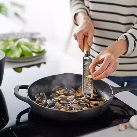 Этот материал равномерно распределяет тепло и быстро реагирует на изменение температуры, поэтому пища не пригорает и не прилипает к поверхности.