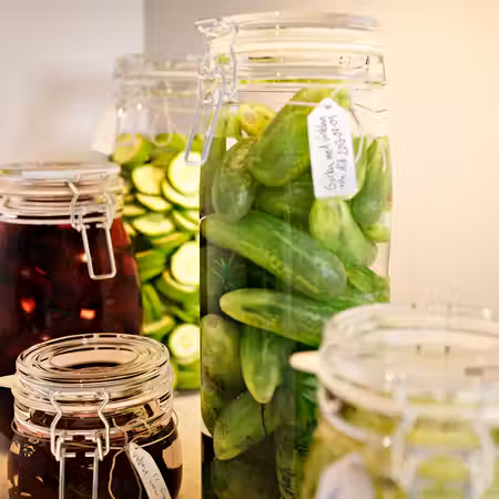 Аксессуары серии КОРКЕН идеальны для домашних солений и джемов, подачи напитков или хранения печенья собственного приготовления.