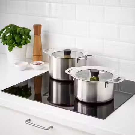 Благодаря широкому металлическому ободку крышки КЛОКРЕН подходят для кастрюль двух размеров.