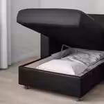 Можно дополнить подголовником ВИМЛЕ, чтобы сделать спинку дивана выше и обеспечить комфортную опору для шеи.