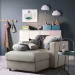 Можно дополнить подголовником ВИМЛЕ, чтобы сделать спинку дивана выше и обеспечить комфортную опору для шеи.