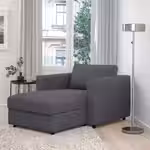 Можно дополнить подголовником ВИМЛЕ, чтобы сделать спинку дивана выше и обеспечить комфортную опору для шеи.