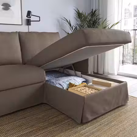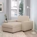 Можно дополнить подголовником ВИМЛЕ, чтобы сделать спинку дивана выше и обеспечить комфортную опору для шеи.