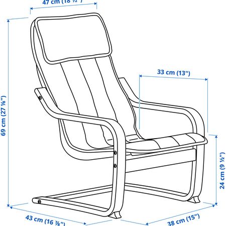 Легко поддерживать в чистоте, так как съемный чехол можно стирать в машине. Подходит к большому креслу ПОЭНГ. Ширина: 47 см. Глубина: 60 см. Высота: 68 см. Ширина сиденья: 38 см. Глубина сиденья: 36 см. Высота сиденья: 25 см.