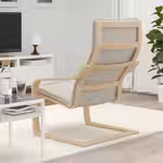 Кресло ПОЭНГ отличают изогнутые линии из гнутого дерева, обеспечивающие приятную поддержку для шеи и удобную упругость.
