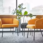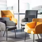 Стильный дизайн дополняют изящные ножки кресла и два желтых цвета в одной цветовой гамме.