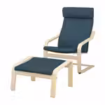 Кресло POÄNG со стильным каркасом из гнутой древесины обеспечивает поддержку шеи, а удобный табурет для ног позволяет отдыхать с комфортом.