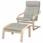 Кресло POÄNG со стильным каркасом из гнутой древесины обеспечивает поддержку шеи, а удобный табурет для ног позволяет отдыхать с комфортом.