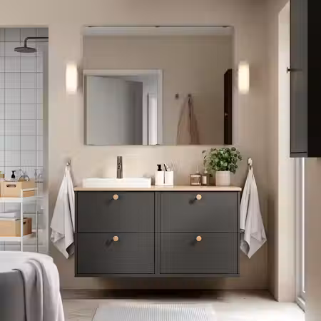 Лаконичному дизайну мебели для ванной серии ХАВБЭКК легко придать индивидуальность, выбрав понравившиеся ручки.