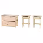 В комплект: 2 прикроватные тумбы и 1 комод с 3 ящиками.