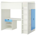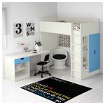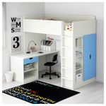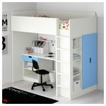 Эта кровать-чердак обеспечивает комплексное решение для детской комнаты – включая письменный стол, гардероб и стеллаж. Вы можете установить стол параллельно или перпендикулярно кровати, а также поставить отдельно, дополнив двумя ножками АДИЛЬС.