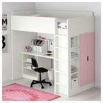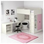 Эта кровать-чердак обеспечивает комплексное решение для детской комнаты – включая письменный стол, гардероб и стеллаж. Вы можете установить стол параллельно или перпендикулярно кровати, а также поставить отдельно, дополнив двумя ножками АДИЛЬС.