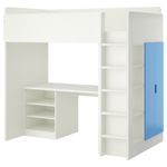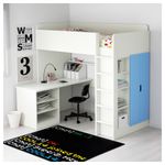 Эта кровать-чердак обеспечивает комплексное решение для детской комнаты – включая письменный стол, гардероб и стеллаж. Вы можете установить стол параллельно или перпендикулярно кровати, а также поставить отдельно, дополнив двумя ножками АДИЛЬС.