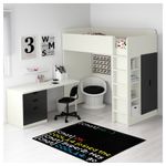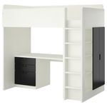 Эта кровать-чердак обеспечивает комплексное решение для детской комнаты – включая письменный стол, гардероб и стеллаж. Вы можете установить стол параллельно или перпендикулярно кровати, а также поставить отдельно, дополнив двумя ножками АДИЛЬС.