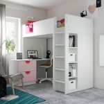Кровать-чердак, белый бледно-розовый/с письменным столом с 3 ящиками 90×200 см IKEA SMÅSTAD СМОСТАД включает в себя следующие материалы: