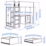Каркас кровати-чердака + стол, модуль для хр/ящик без фронтальной панели,дверь/фронтальная панель ящика