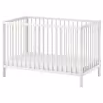 Чтобы предотвратить опасность падения ребенка из кроватки, дно кроватки необходимо установить в нижнее положение, когда ребенок начнет садиться самостоятельно.