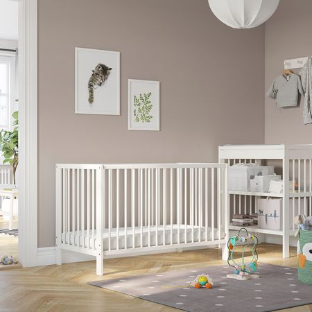 Детская кроватка классического дизайна, в которой малыш может комфортно спать, пока не придет время для «настоящей» кровати.