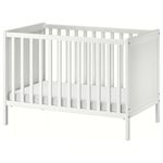 Чтобы предотвратить опасность падения ребенка из кроватки, дно кроватки необходимо установить в нижнее положение, когда ребенок начнет садиться самостоятельно.
