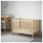 Дно кроватки можно устанавливать на двух разных уровнях. Одну боковину кроватки можно снять, когда ребенок сможет самостоятельно забираться в кроватку и вылезать из нее.