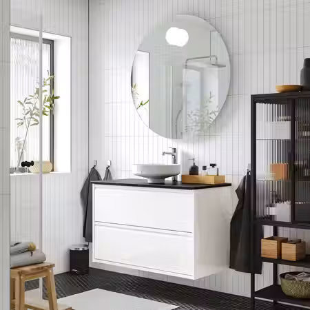 Мебель для ванной серии ХАВБЭКК отличается лаконичным дизайном.