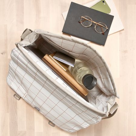 Удобно повесить на крючок рядом с кухонной столешницей.