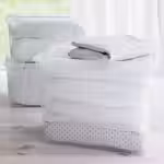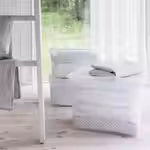 Эта коробка из бархатистой ткани поможет организовать хранение вещей как на открытых стеллажах, так и в гардеробе.