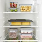 Все, что осталось недоеденным, можно сложить в этот жаропрочный стеклянный контейнер и убрать в холодильник.