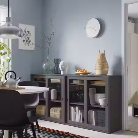 Комбинация д/хранения+стекл дверц, темно-серый/прозрачное стекло