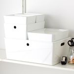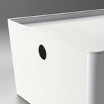 Крышка изготовлена из прочного частично переработанного пластика и является частью серии КУГГИС, в которой размеры всех товаров согласуются друг с другом.