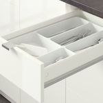 Модуль с ящиками и полками можно использовать для хранения посуды, приборов и сковородок.