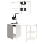 Серия ЭНХЕТ — это комбинации мебели даже для маленькой кухни или домашней прачечной. Здесь много места на открытых полках и за глухими фасадами, и есть куда поставить бытовую технику.