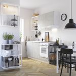 Серия ЭНХЕТ позволяет создавать комбинации мебели, чтобы начать в кухне новую жизнь. В этом решении есть место на открытых полках и за глухими фасадами, столешница, а благодаря правильной организации пространства есть куда поставить бытовую технику.