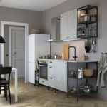 Серия ЭНХЕТ позволяет легко создавать кухонные комбинации. Здесь есть место на открытых полках и за глухими фасадами, предусмотрено пространство для встраиваемой техники, а при выборе узкой варочной панели останется просторная столешница.