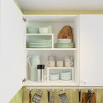 Можно дополнить ковриком для ящика и поддонами, чтобы защитить поверхность от царапин, которые могут оставить тяжелые сковороды и кастрюли.