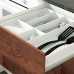 Можно дополнить ковриком для ящика и поддонами, чтобы защитить поверхность от царапин, которые могут оставить тяжелые сковороды и кастрюли.