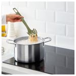 Не повреждает антипригарное покрытие кастрюль и сковородок. В набор входит: лопатка (32 см), ложка (33 см), половник (29 см), ложка для спагетти (31 см) и кулинарные щипцы (28 см). Армированная полиамидная пластмасса